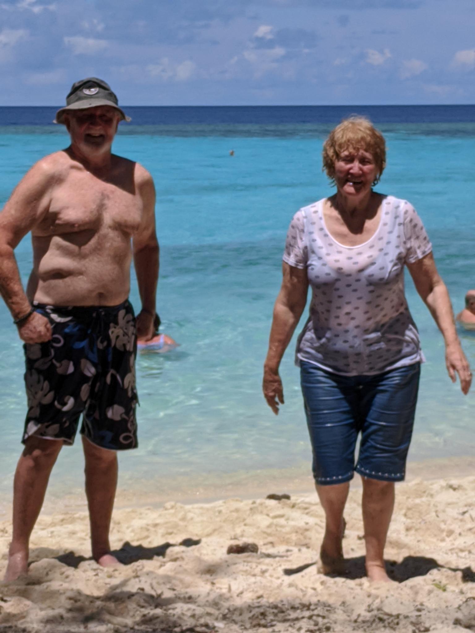Grandad bod, Neal with Sharon on the beach