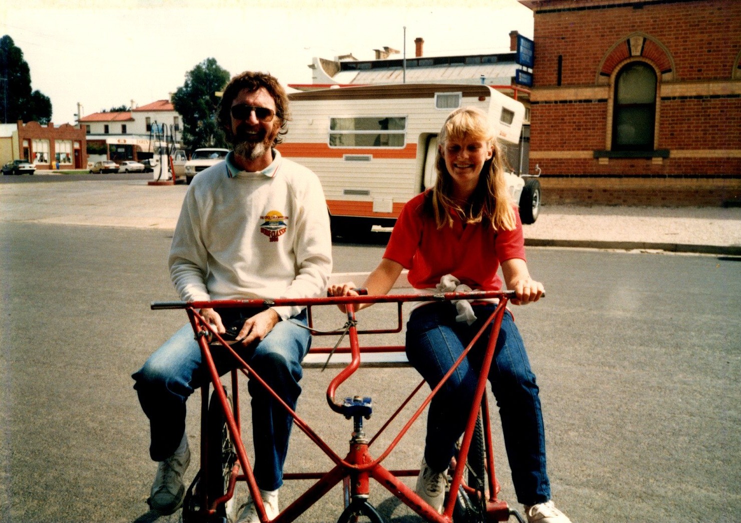 Neal & Allison riding a dual side by side bike