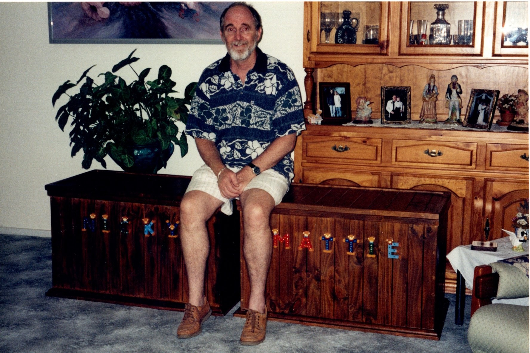 Neal stting on the toybox's that he made for Matt & Nick